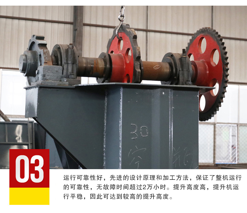 3.運(yùn)行可靠性好,先進(jìn)的設(shè)計原理和加工方法,保證了整機(jī)運(yùn)行的可靠性,無故障時間超過2萬小時。提升高度高,提升機(jī)運(yùn)行平穩(wěn),因此可達(dá)到較高的提升高度。