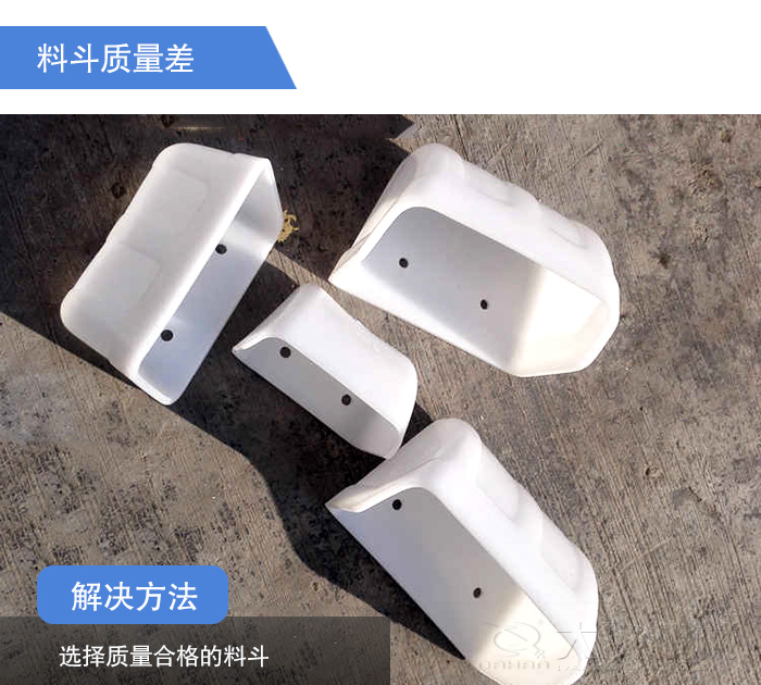 解決方法:選擇質(zhì)量合格的料斗,一般來說,料斗是用普通鋼板或鍍鋅板材焊合或沖壓而成的,其邊緣用折邊或卷入鉛絲以增強(qiáng)料斗的強(qiáng)度。